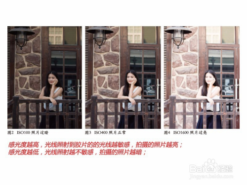 感光度越高,光线照射到胶片的的光线越敏感,拍摄的照片越亮;