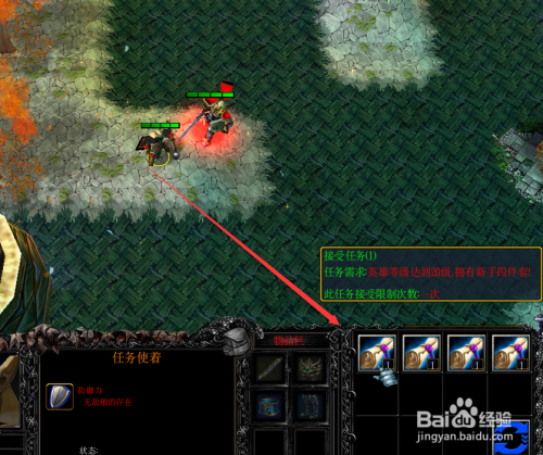 在进行魔兽rpg梦回仙界1.0.0开局使命之前,要先把英雄品级进级到20级以上,并当作功领取了新手套装,如下图所示。