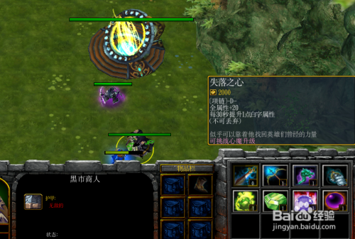 接着去暗盘商人处采办掉落之心,每30秒可以晋升一点白字属性