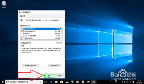 用户在"确定 (按钮)"上左键单击(在"(C:)的磁盘清理"中)。