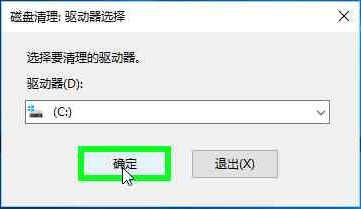 用户在"确定 (按钮)"上左键单击(在"磁盘清理: 驱动器选择"中)。