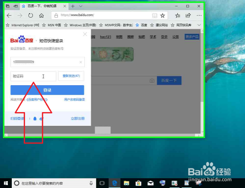 电脑利用手机短信快捷登录浏览器百度账户,完当作。