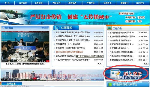 登录本地市工商行政办理局网站,点击进入网上挂号