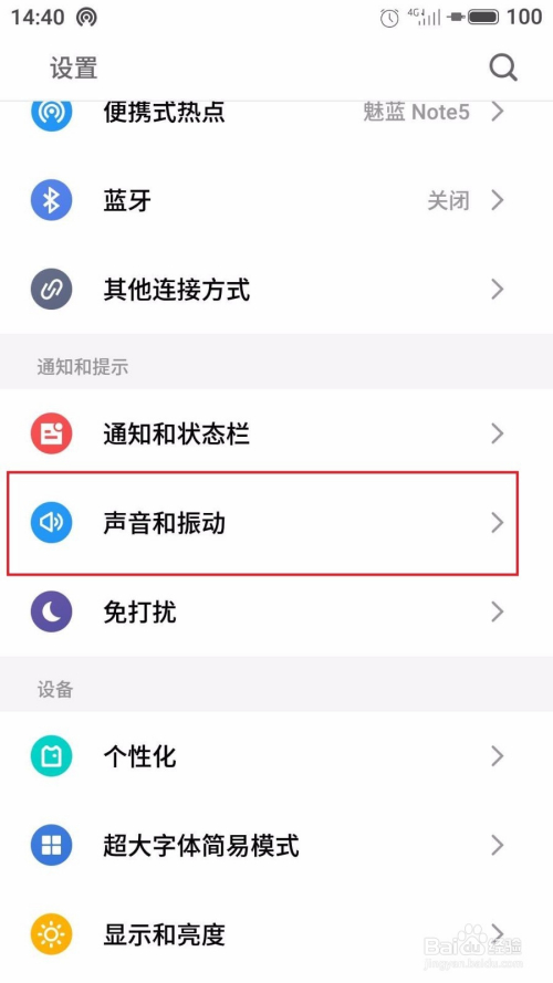 第二步:进入设置界面后,如下图所示,我们在此界面中找到声音和振动一栏,如下图所示,然后点击声音和振动。