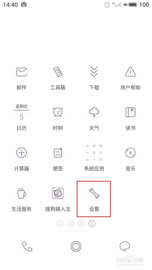 第一步:首先我们拿到手机后,打开手机进入手机桌面,在手机桌面上找到设置图标,如下图所示。然后点击设置图标。