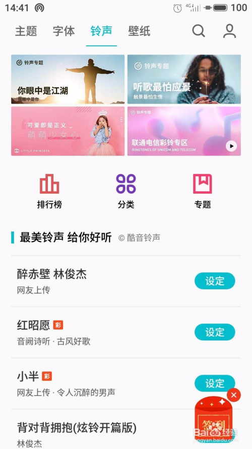 第九步:进入在线铃声界面,如下图所示,在这里可以找到和搜刮各类各样的德律风铃声歌曲,选择我们喜好的歌曲后设置即可。