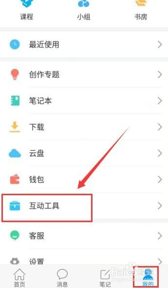 如许就可打开此页,上方有客服、笔记本等选项,可以利用记实进修心得,下方有互动东西,点击打开。