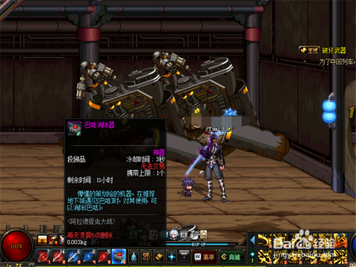 而我们每一个账号城市送我们一个如许的道具,叫做巴咕消弭器,把他拖动到我们的物品栏上面,便利利用。