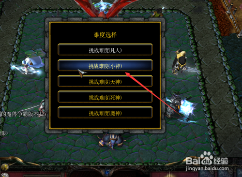直接选择魔兽rpg天神试练1.4.0游戏的难度,如下图所示。