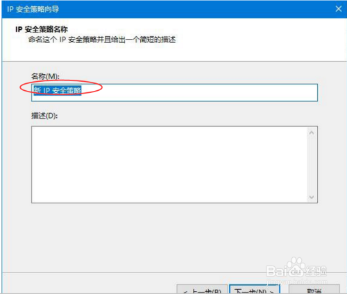 然后,点击菜单栏,选择建立IP平安策略选项,会跳出IP平安策略标的目的导对话框,单击下一步。