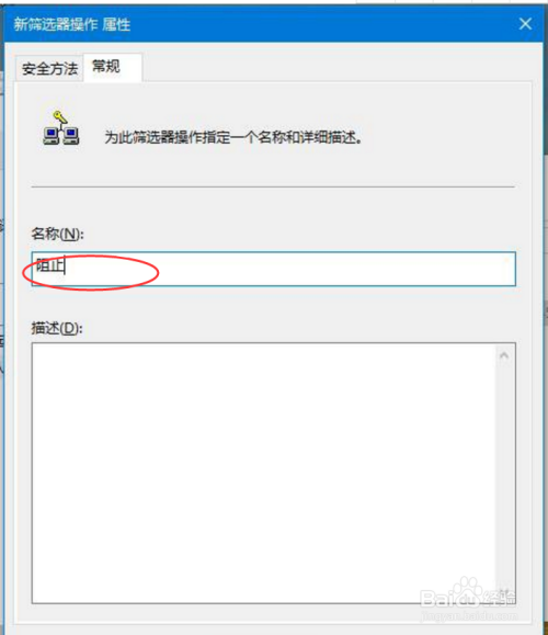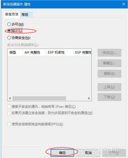 去失落利用添加标的目的导的勾子,单击添加,在弹出筛选器操作属性中,平安方式选项,选择阻止,如图所示。