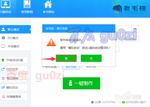 当提醒建造当作功时,可以利用模拟启动测试一下U盘的结果。
