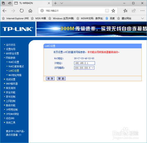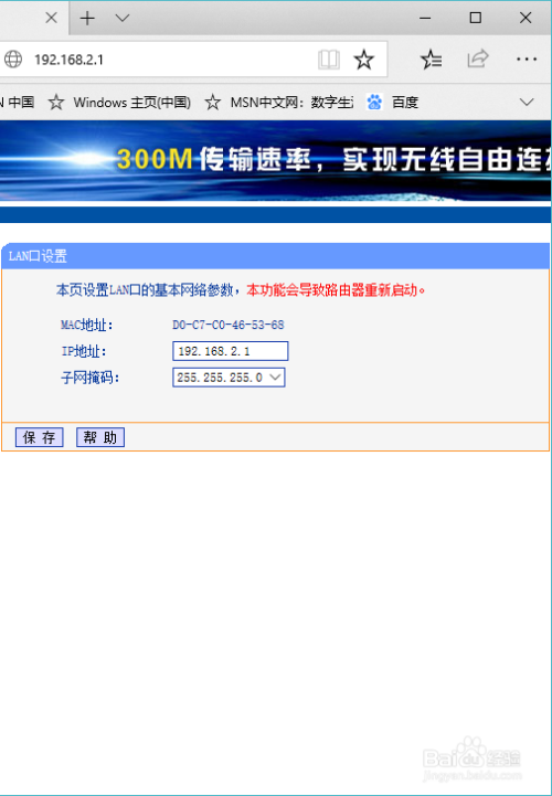 更改第二个路由器IP地址为192.168.2.1 .