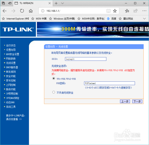 设置自界说无线网名称和密码。Wan接口接入路由器,可以利用"设置标的目的导",进行设置。