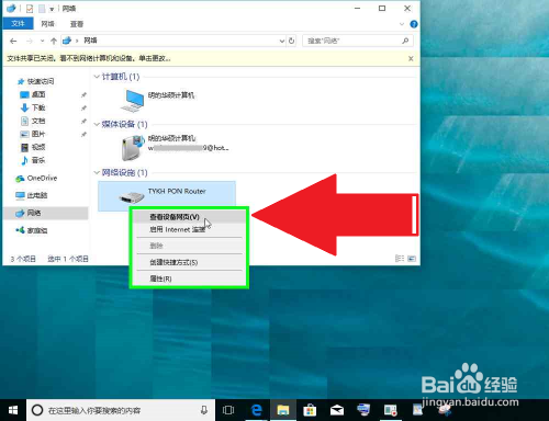 在"查看设备网页(V) (菜单项目)"上左键单击,登录光纤猫。