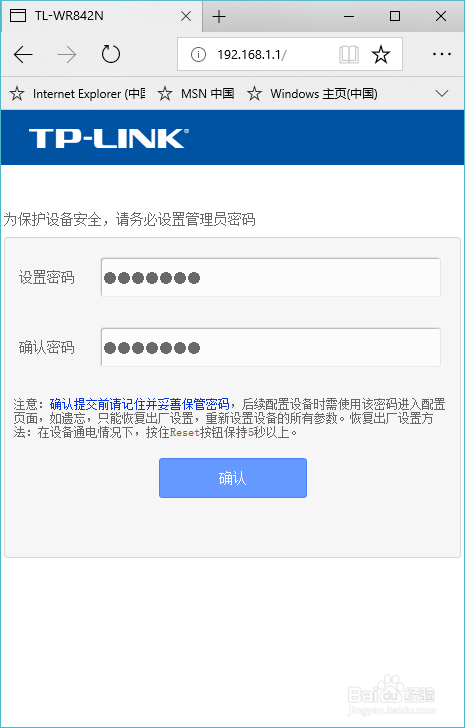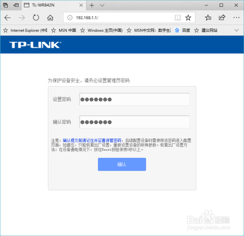 在浏览器搜刮中输入"192.168.1.1",回车搜刮。登录路由器,设置自界说路由器登录密码。
