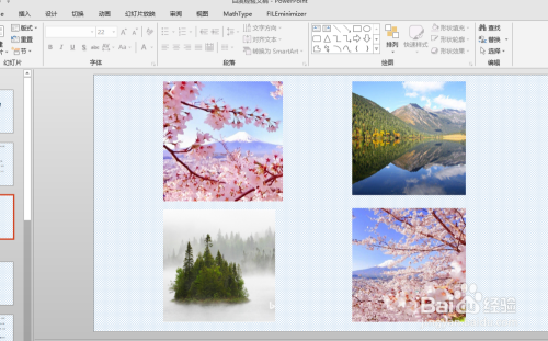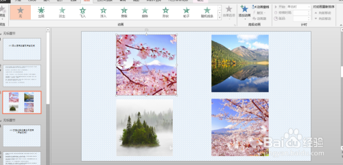 我们进入PPT页面,插入我们需要的图片后,想要给所有图片快速的添加统一种动画,这时我们需要利用动画刷东西,便可以快速达到目标。