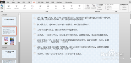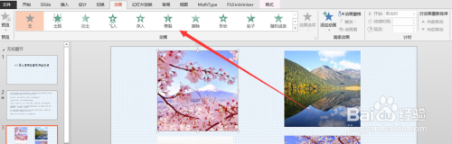 左键单击选中图片,然后在动画菜单选择动画。