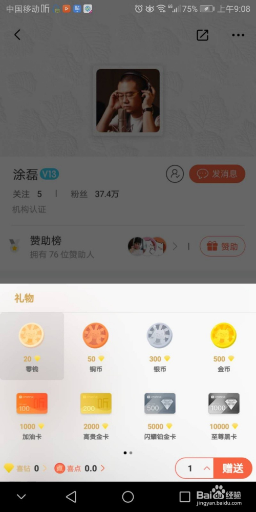 再次回到赞助本家儿页面点击赠予,系统会提醒赞助当作功,进入到榜单还可以看到本周排名。