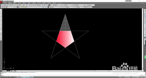 打开CAD,画出一个五角星,五角星本身画出即可,这里不做介绍;然后找到【画图】菜单栏下的【图案填充】,点击打开。