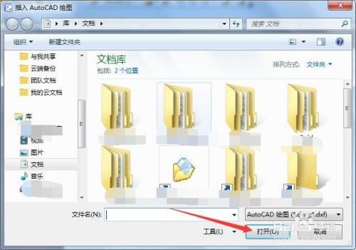 方式二、插入中,直接可以看到cad画图,点击即可启动文件选择,从中找到之前建立的dwg等类型文件,进行打开。