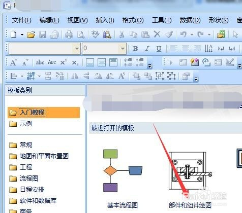 接着启动visio,筹办将cad图,进行插入,首先需要建立空白图纸,考虑到并不是绘制流程图,工程图中模块可能更合适,所以点部件组件绘制。