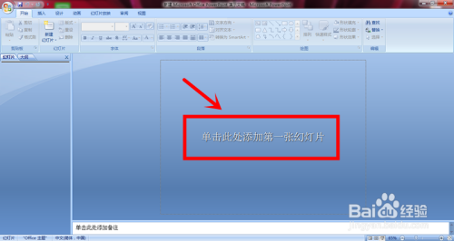 这时,我们点击页面中添加第一张幻灯片提醒建立第一张幻灯片;