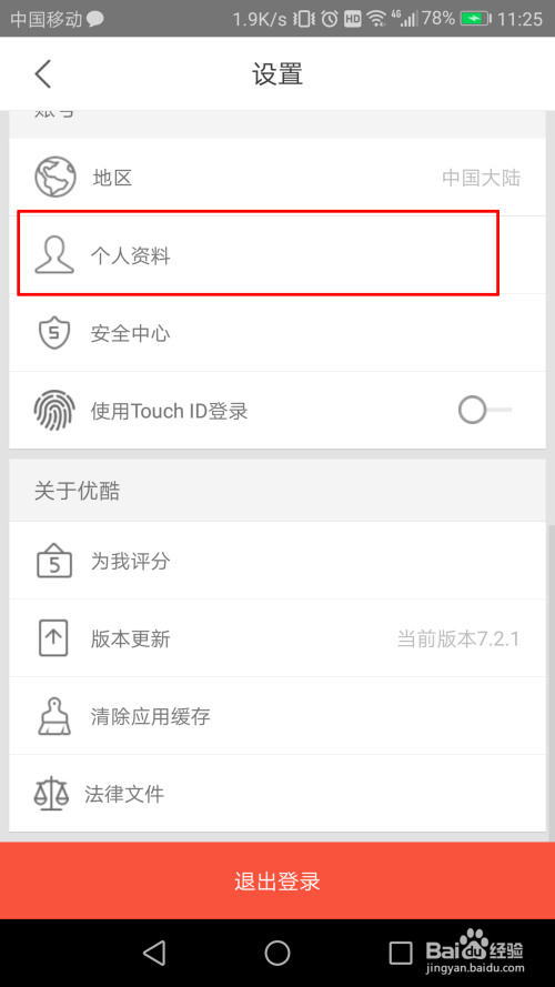 大师往下面滑动,找到小我资料。