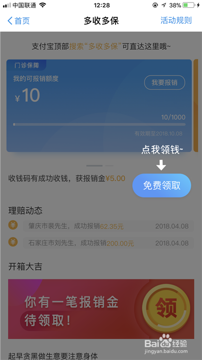 打开就可以获取响应的报销金。