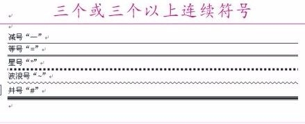 在Word中其实存在如许一个功能,只要你连着输入三个或以上的-(减号),然后回车,你就会发现Word可以快速的生当作一条下划线。我试过良多种符号都可以生当作各类分歧的下划线,如:-减号是一条下划线,=等号是双线下划线,*星号是虚线,~ 是海浪线,# 井号是三层线。