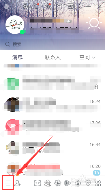 在电脑上登录QQ后,点击本家儿页的菜单选项按钮,如下图所示。