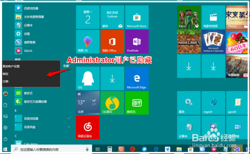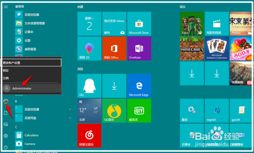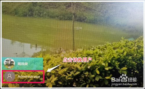 在起头屏幕中点击正在运行的用户图标,在睁开的【更改用户设置】对话框中点击 Administrator,即可切换到 Administrator 用户。