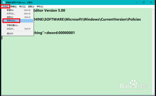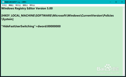 方式一:建造一个埋没快速切换用户的注册表文件,添加到注册表中,即可埋没Win10系统埋没快速切换用户功能。