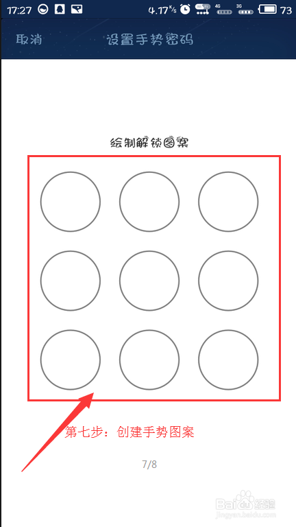 第七步:按照本身需要设置第一次手势密码图案。