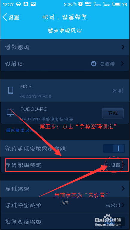 第六步:点击页面上的建立手势密码。