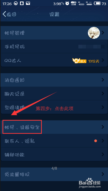 第四步:点击账号、设备平安。