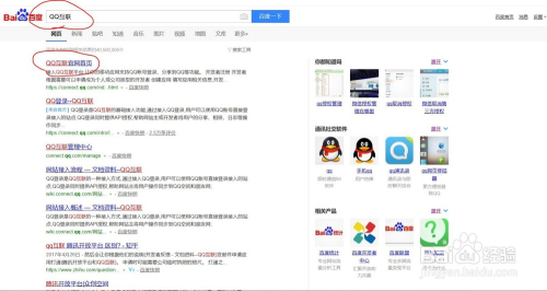 在浏览器中输入【QQ互联】搜刮,然后点击进入官网的首页。