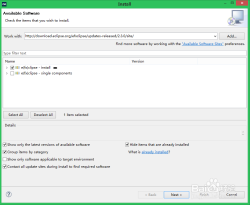 输入图中work with所指的方针下载地址,点击回车,会发现弹出可以下载的内容,全数选中,然后点击Next