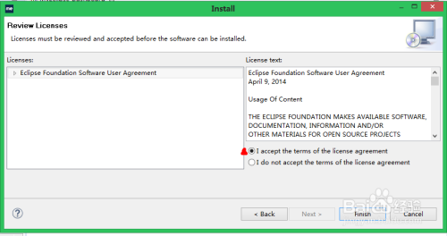 选中I accept the terms of the license agreement,然后点击finish