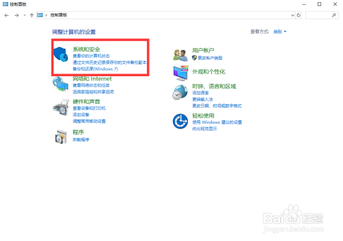 当然,也可以打开节制面板,选择系统与平安,单击进入系统与平安。