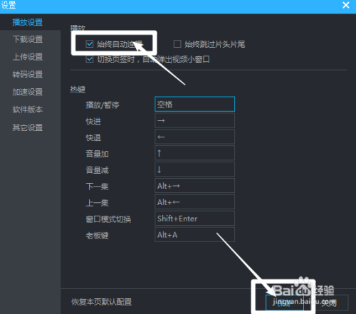 我们看到【始终主动连播】给它打上勾,并保留