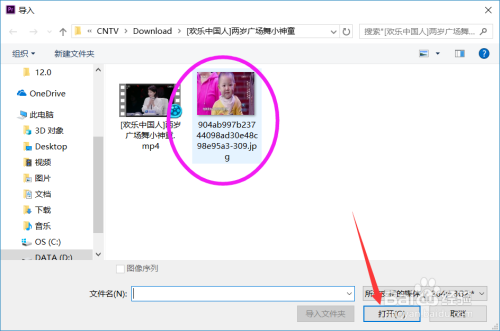 选中文件,点击打开按钮,导入素材文件