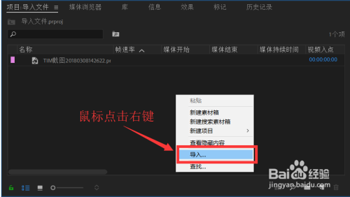 鼠标右键点击项目面板空白处,弹出选择导入
