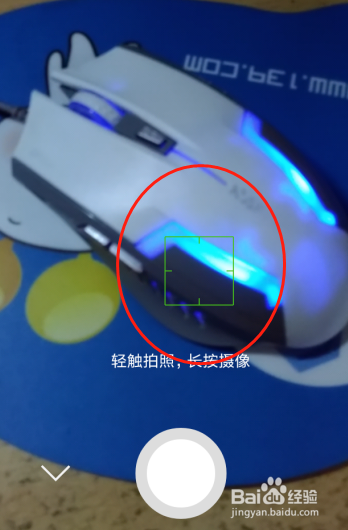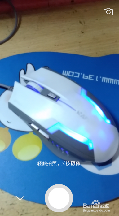 进入拍摄页面,提醒轻触摄影,长按摄像