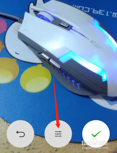 拍摄完当作后,第一个是撤销键,中心是美化键,第三个是确定键