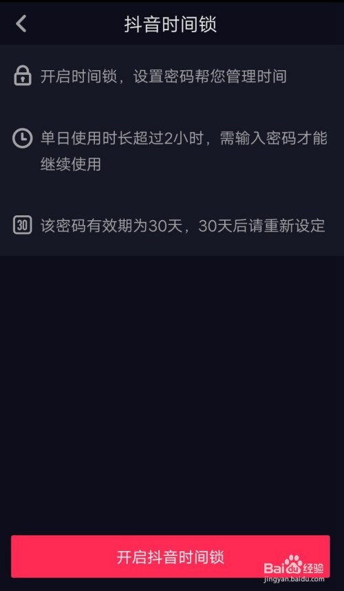 比来痘印为了规范用户利用时候,增添了一个时候锁功能!开启时候锁后系统会为你主动计较利用时候,天天不雅看时候跨越2小时就需要输入密码才可以接着不雅看。并且密码的有用期为30天,跨越时候后需要从头设置。下面教大师如何设置时候锁。