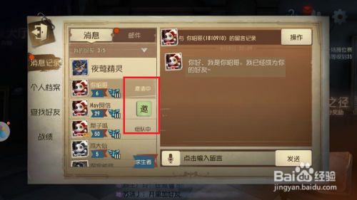 第四步选摘要邀请的老友,点击邀,就标的目的老友发送申请了,对方赞成就一路组队了,如下图所示: