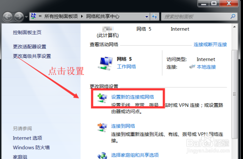 进到【打开收集和共享中间】界面,点击【设置新的毗连或收集】