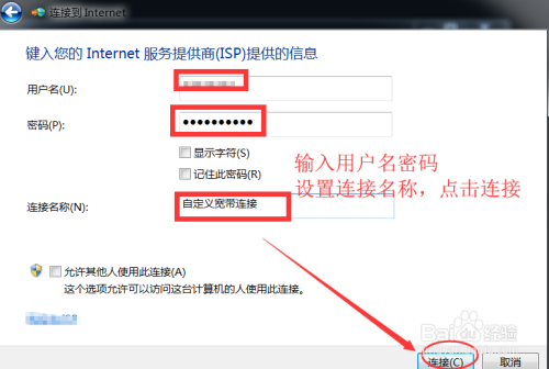 输入用户名和密码,以及设置好毗连名称,点击下方的【毗连】即可。