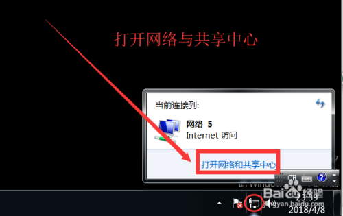 打开节制面板或者电脑桌面右下方的【收集】图标,点击【打开收集和共享中间】